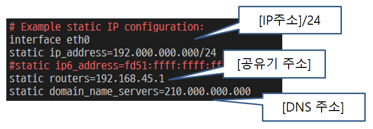 # Example static IP configuration:이라고 작성되어 있는 부분을 찾아서,