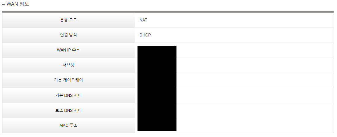 비밀번호는 공유기 뒷편에 쓰여있는 "유선MAC주소의 뒤 5글자"이다.