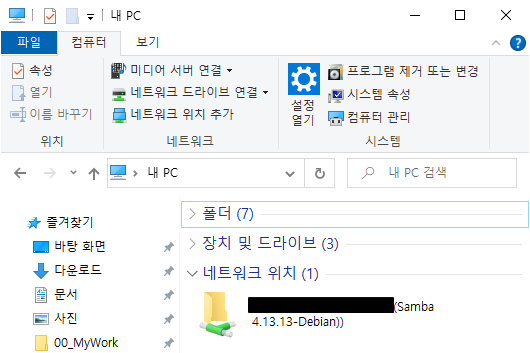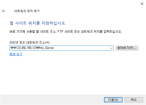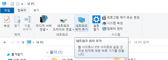 '내 PC'에서 네트워크 위치 추가를 선택한다.