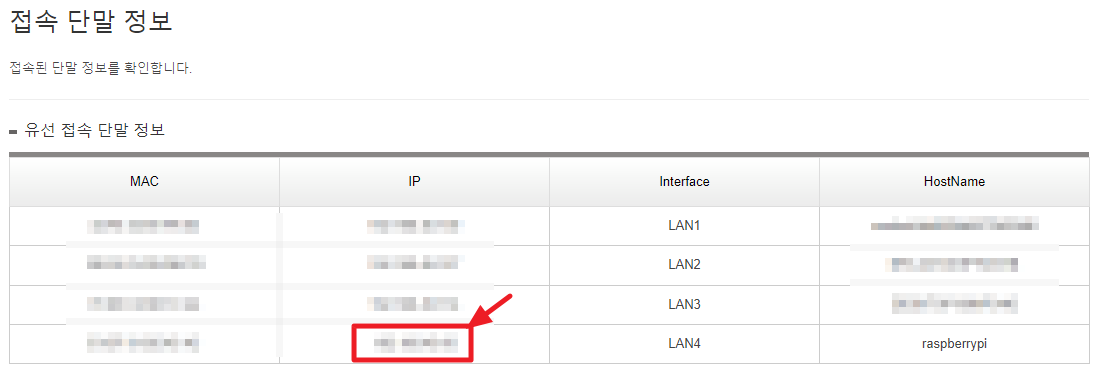 라즈베리파이가 접속되어 있는 IP를 알아야 한다.