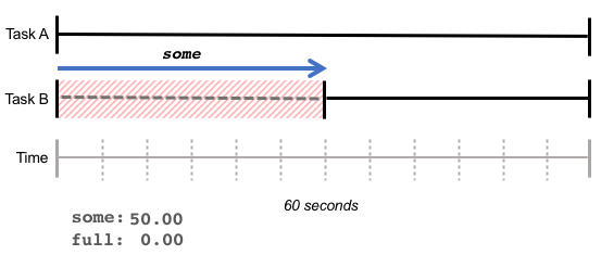 최근 60초 동안, IO를 위해서 TaskB가 30초 동안 대기(stall)하였다. 그렇다면, 어떤 임의의 process가 stall 상태이므로 some 구간이라고 하며, 그 수치는 "30/60 = 0.5 = 50%"로 계산된다.