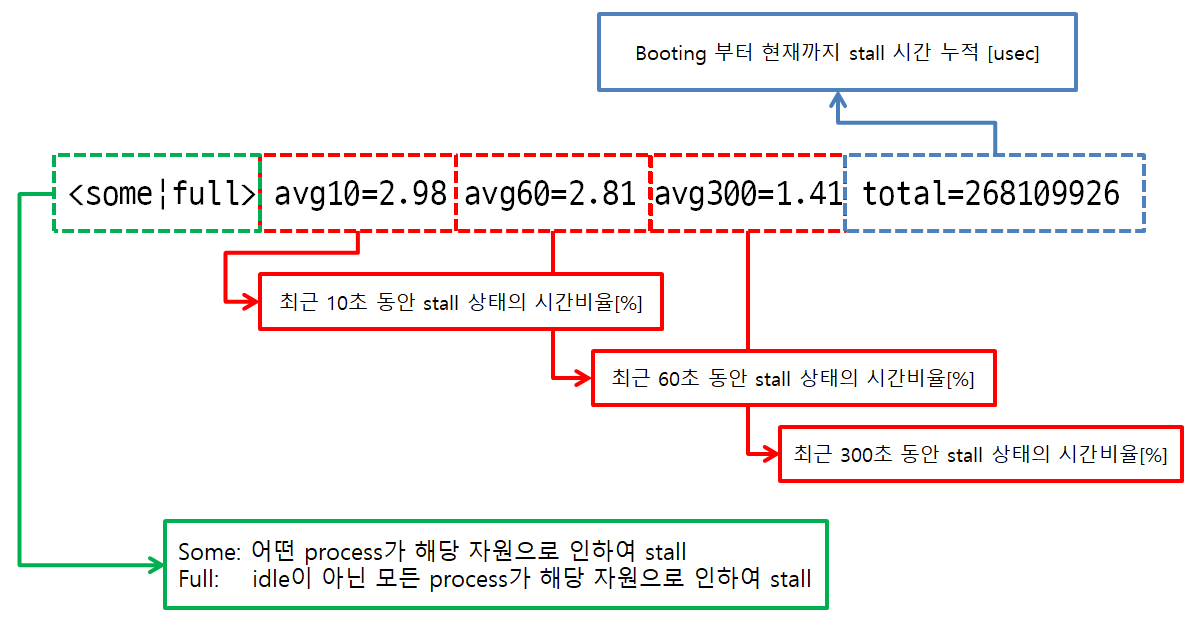 이 기능은 Pressure Stall Information(PSI) 이름으로 Kernel에 추가되었고, 아래에서는 그 의미와 사용 방법을 간단하게 작성하였다.
