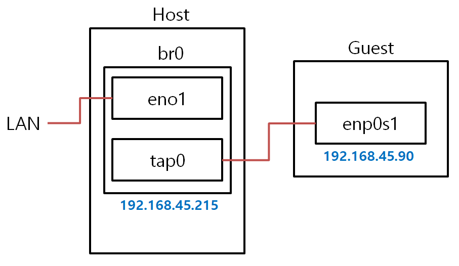 그 안에 LAN(eno1)와 tunnel(tap0)를 만든다.