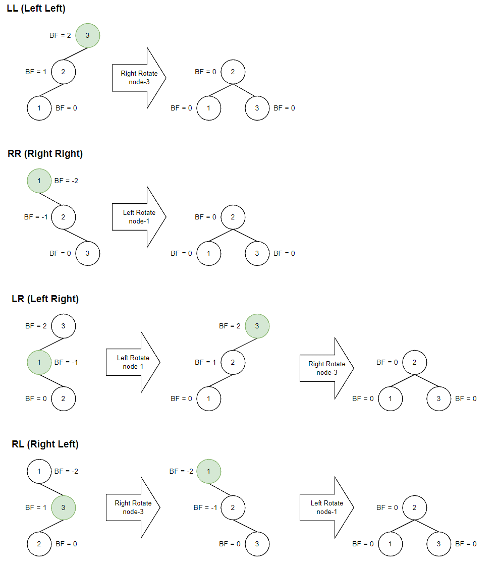 - BF = "Left_SubTree_Height" - "Right_SubTree_Height"