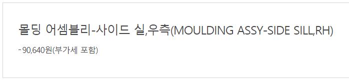 모비스 홈페이지에서 "몰딩 어셈블리 - 사이드 실"로 검색하면 재고를 보유하고 있는 대리점을 쉽게 찾을 수 있고, 가격도 알 수 있다.