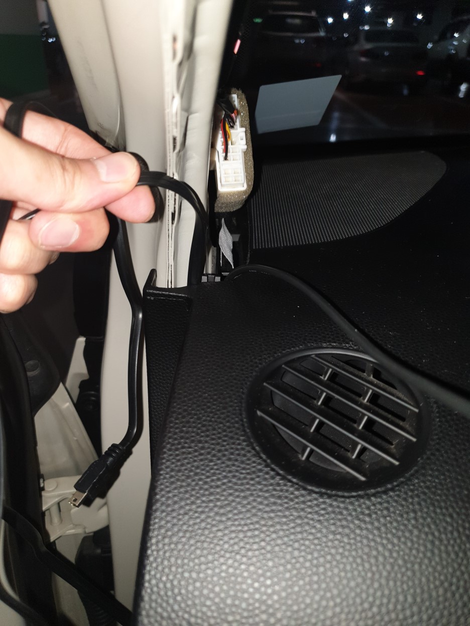 블랙박스가 설치되어 있다면 블랙박스 선도 A필러 내부에 몰딩 되어있는 걸 볼 수 있다