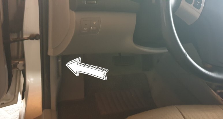 운전석 아래쪽, 레버를 이용해서 앞쪽의 후드를 연다.