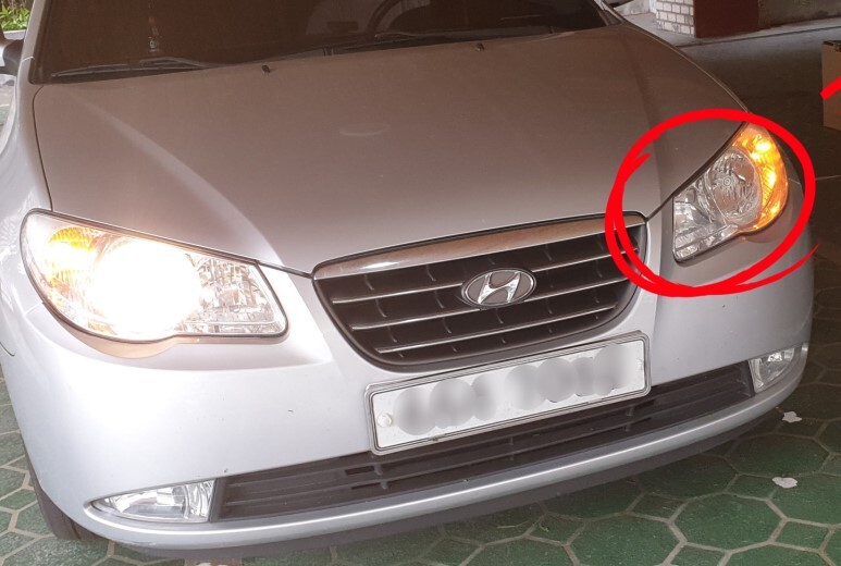 위 사진처럼 좌측 전조등이 작동하지 않는다.